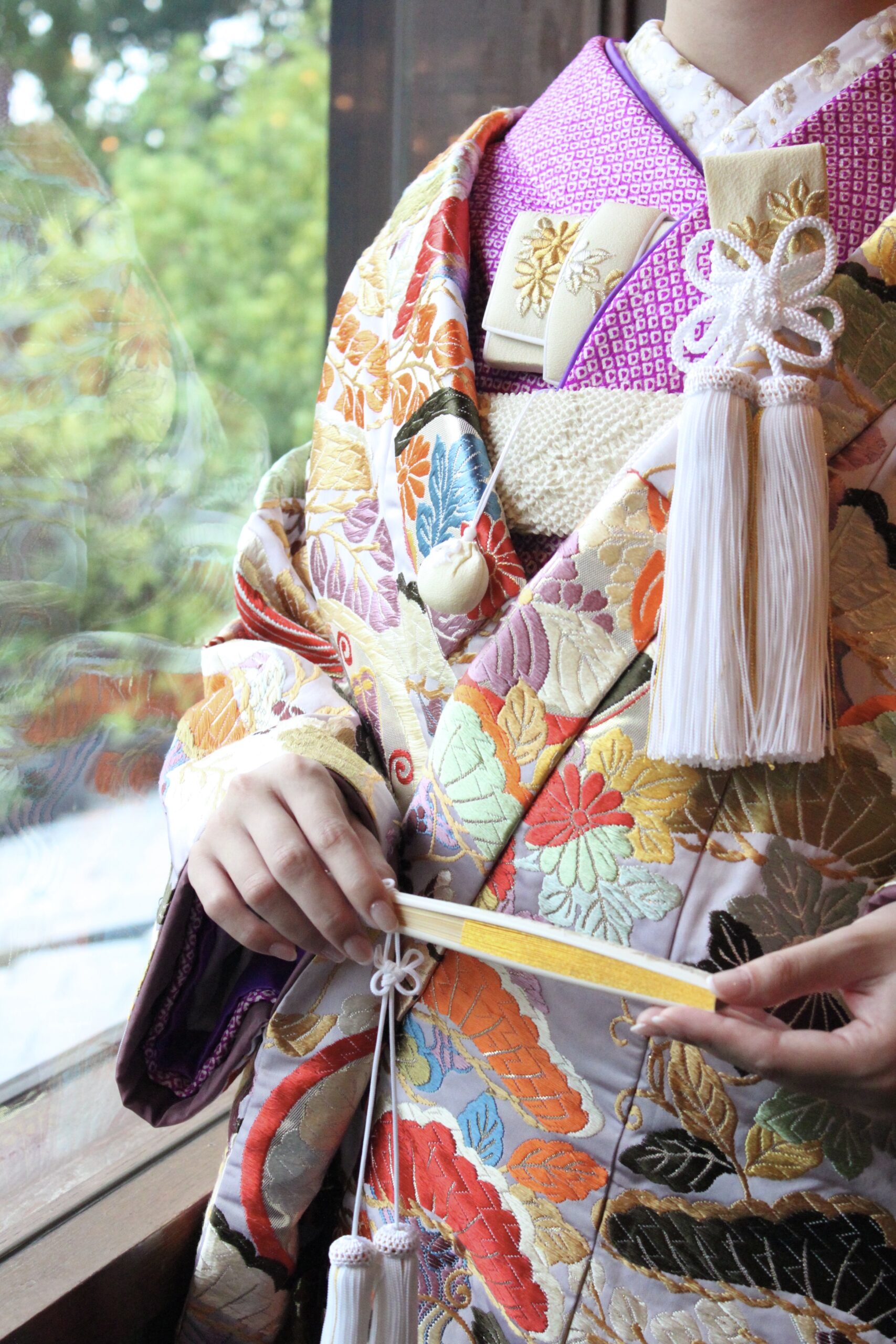 今回ご紹介するコーディネートは色打掛の持つ華やかさを活かしながらも、上品さのある小物を取り入れました。