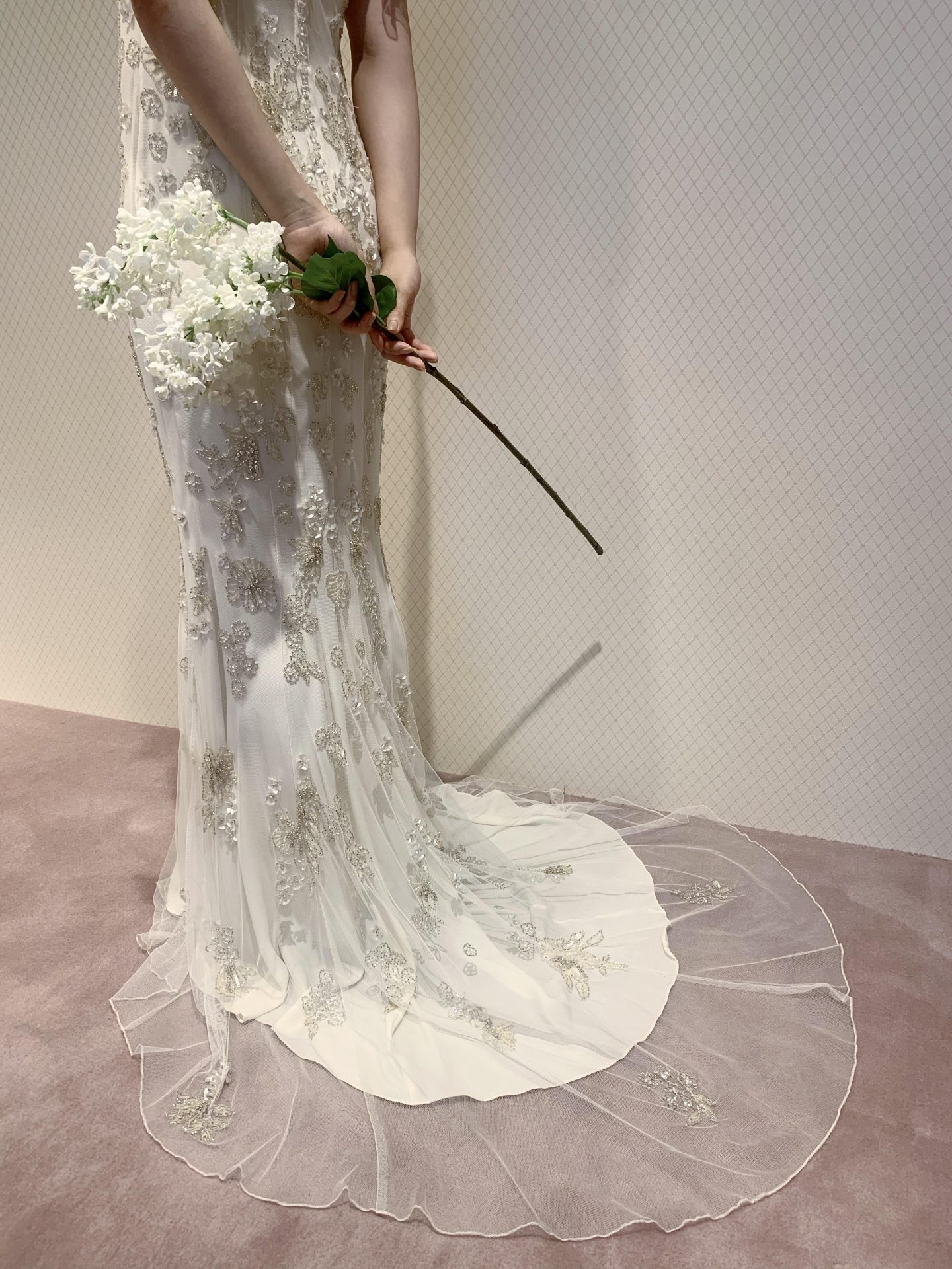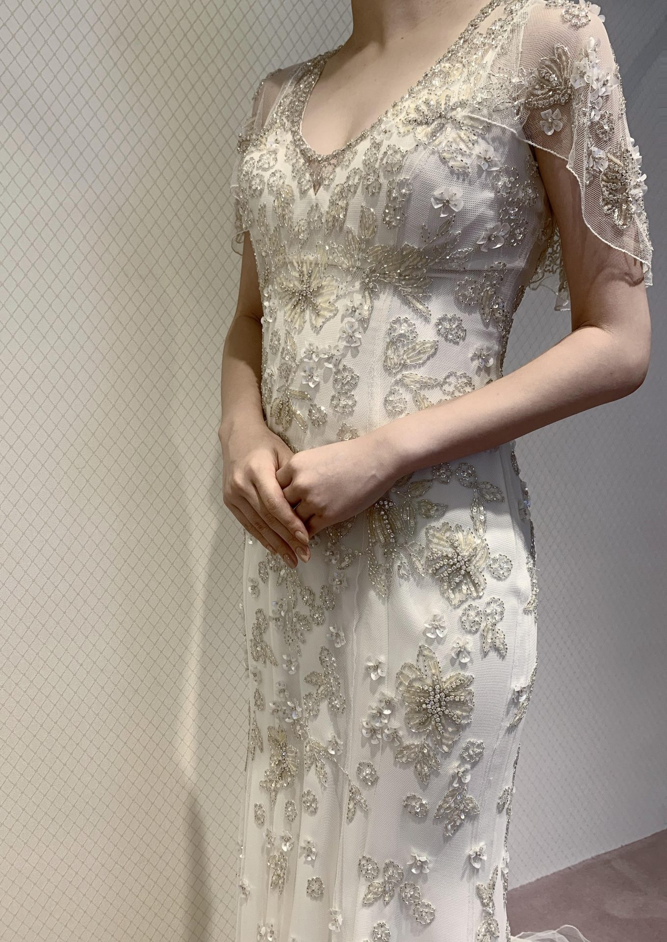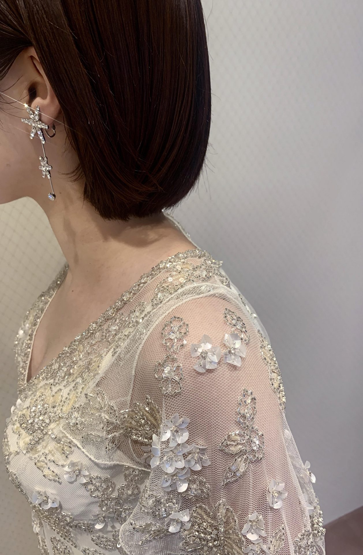 バックスタイルにも繊細なビジューがふんだんに施されており