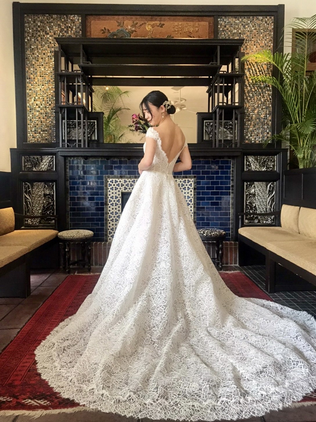 フィリピン出身の女性デザイナーである彼女が生み出すドレスは、エレガントかつフェミニンなデザイン、そしてモダンを融合させた他にはないロマンティックな世界観をもち、世界中の花嫁様から愛されています。優美なレース使いやディールまでこだわった精緻なデザインはもちろんのこと、最上級のシルク素材と職人のクチュールテクニックによる着心地の良さは、身に纏う花嫁様の表情を幸福感溢れる笑顔へと導きます。