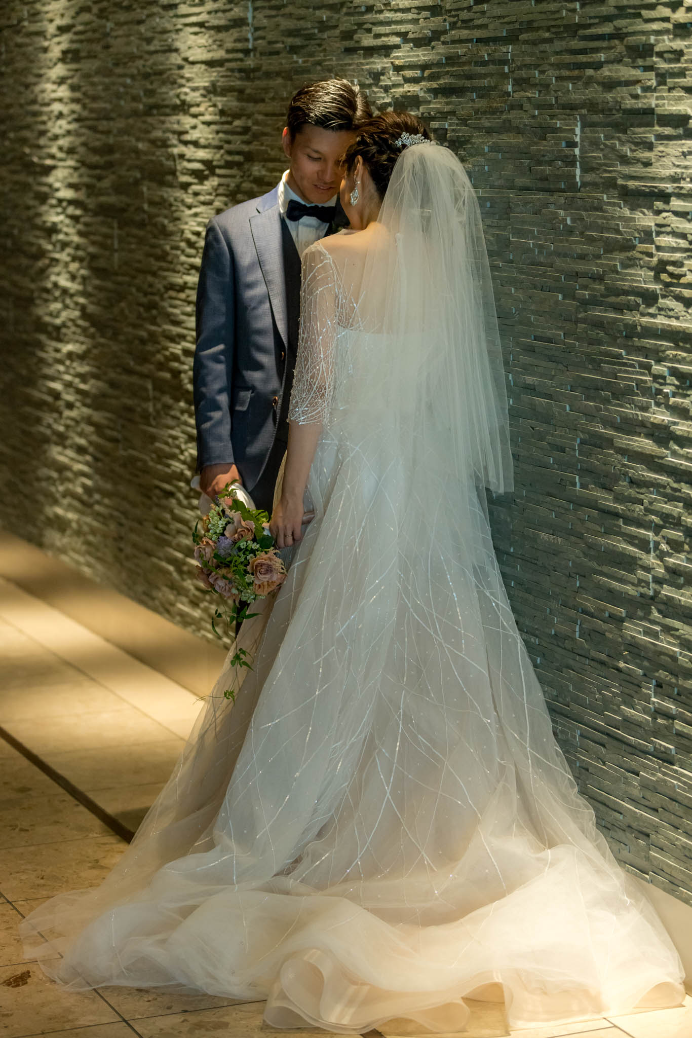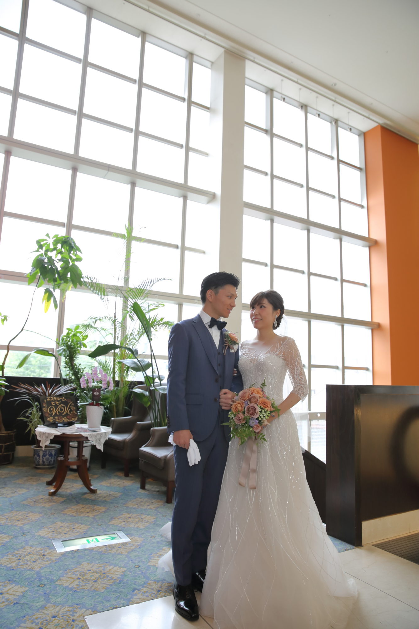 そんな中でも、窓から見える景色と開放感のあるバンケットに映えるようにと、こちらの一着を選ばれました