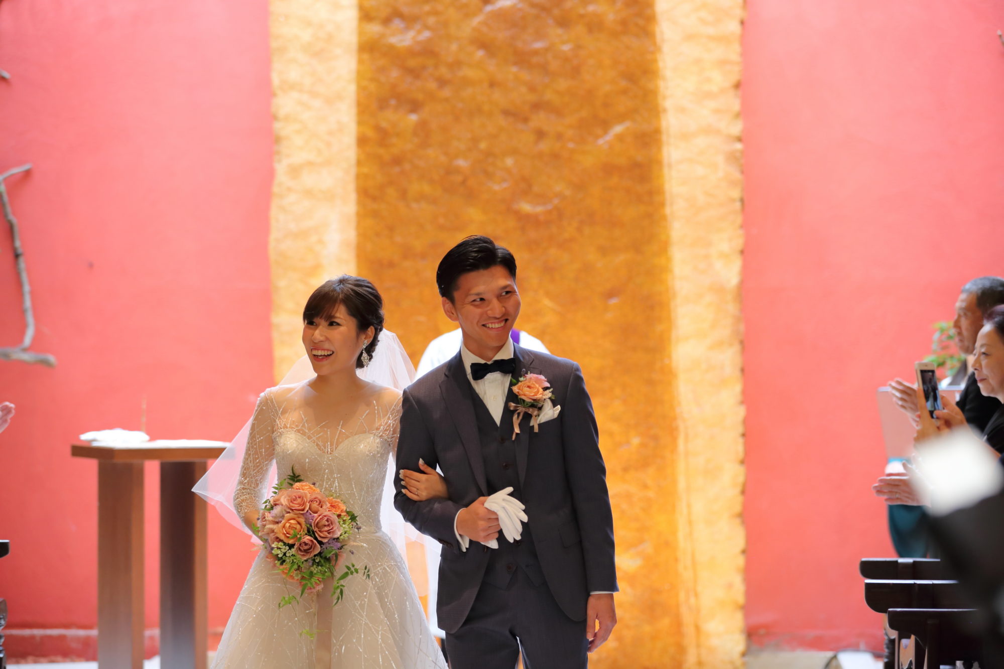おふたりが誓いを交わすバージンロードの先には、天窓から明るい陽の光が差し込み、