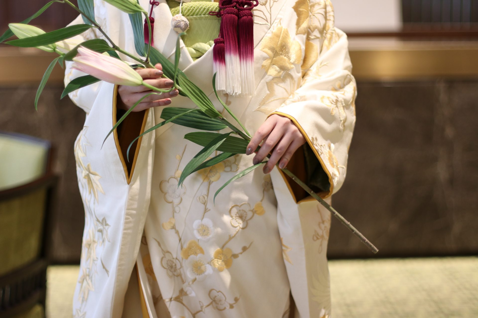 お色直しは、ウェディングドレスから全く異なる表情をみせる色打掛もおすすめです。