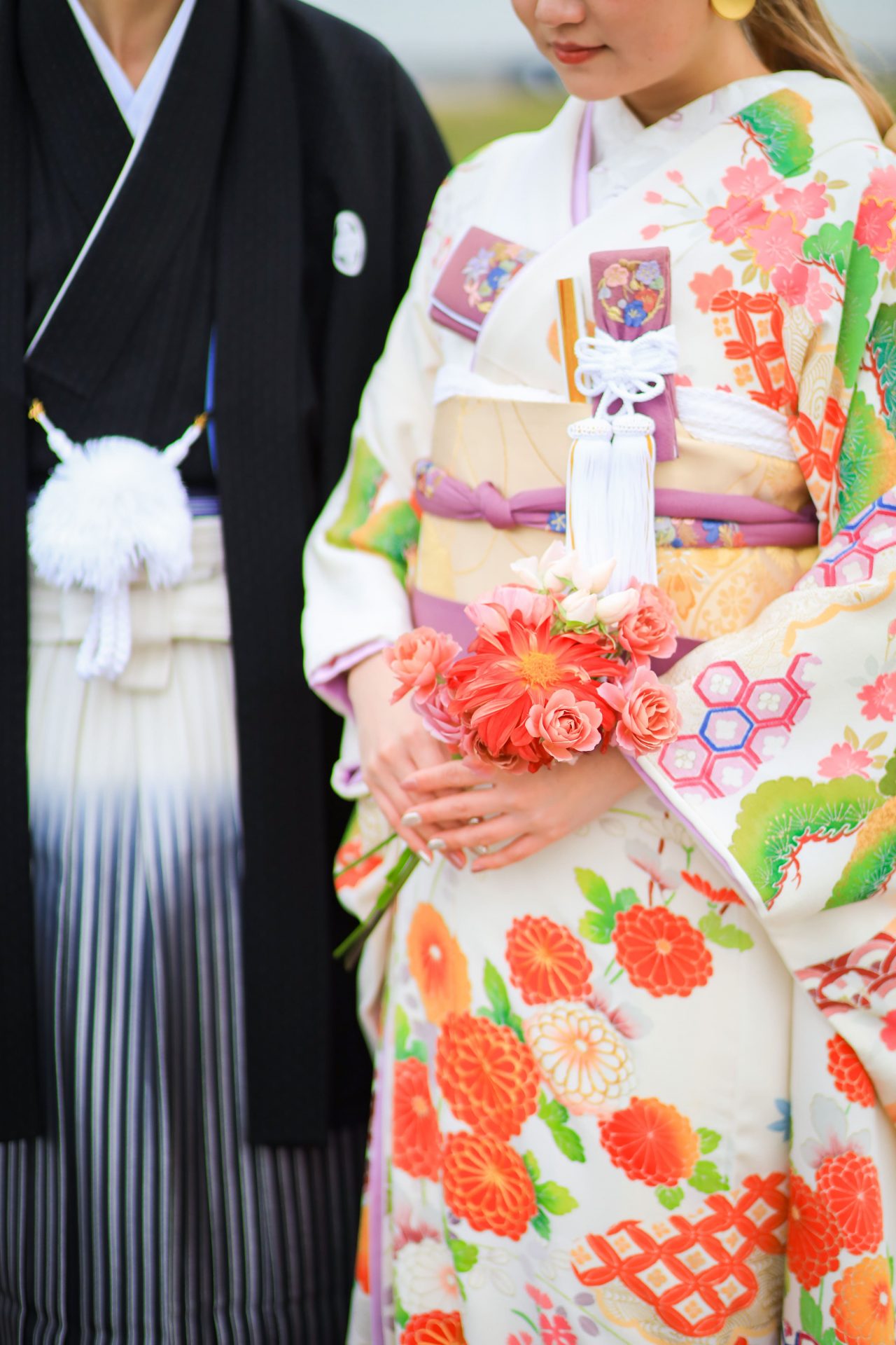 柄行に合わせた大ぶりなお花を合わせても、統一感が出て素敵です。