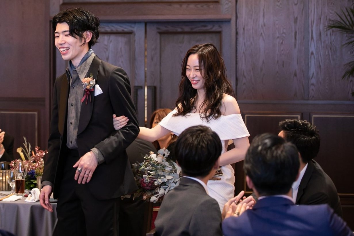 そして、あえてお色直しでウェディングドレスをお召しいただくことでゲストの方々の目にも新鮮に映り、皆様の記憶に残るパーティーに。