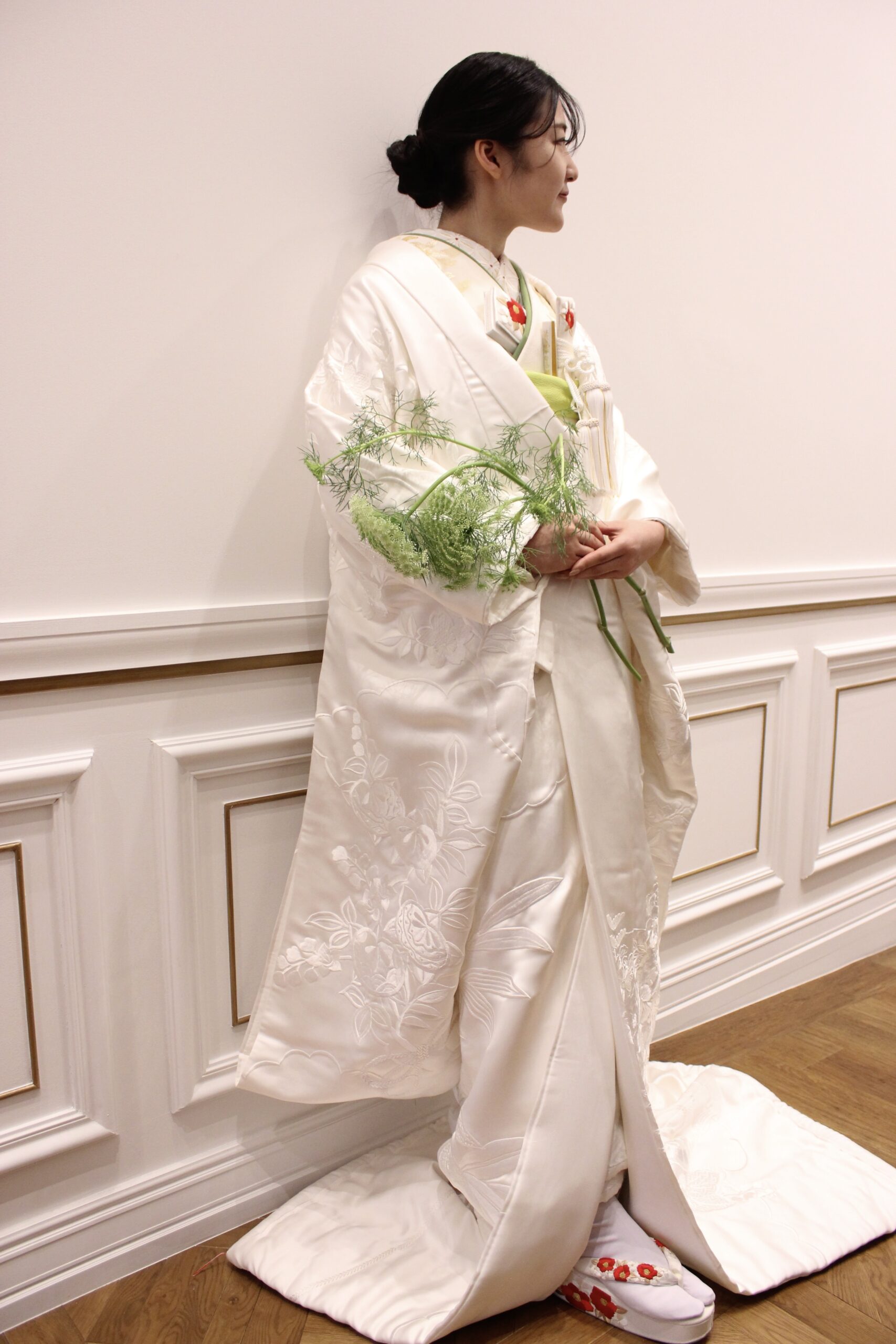 春めく季節の柔らかさ感じる白無垢のコーディネート