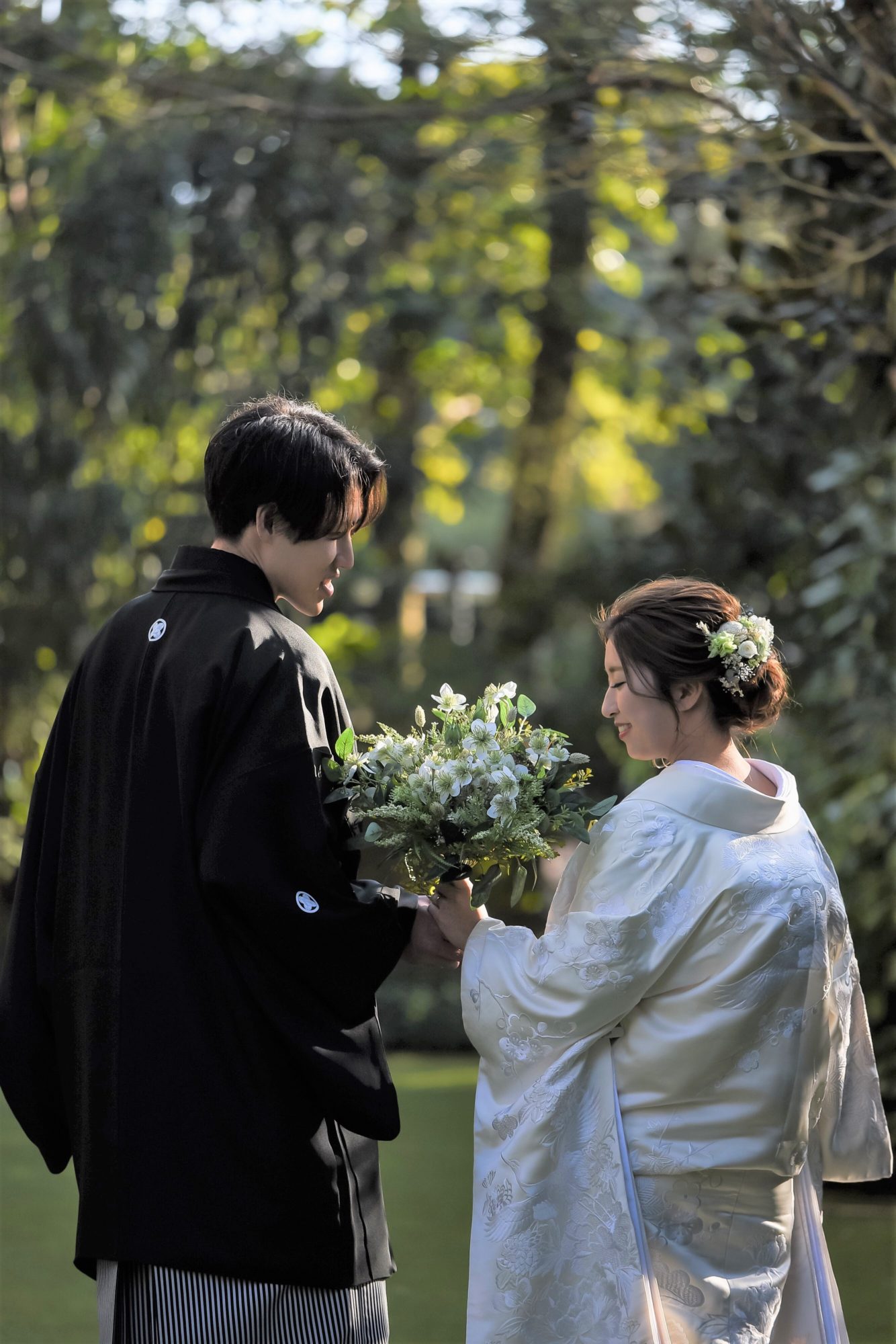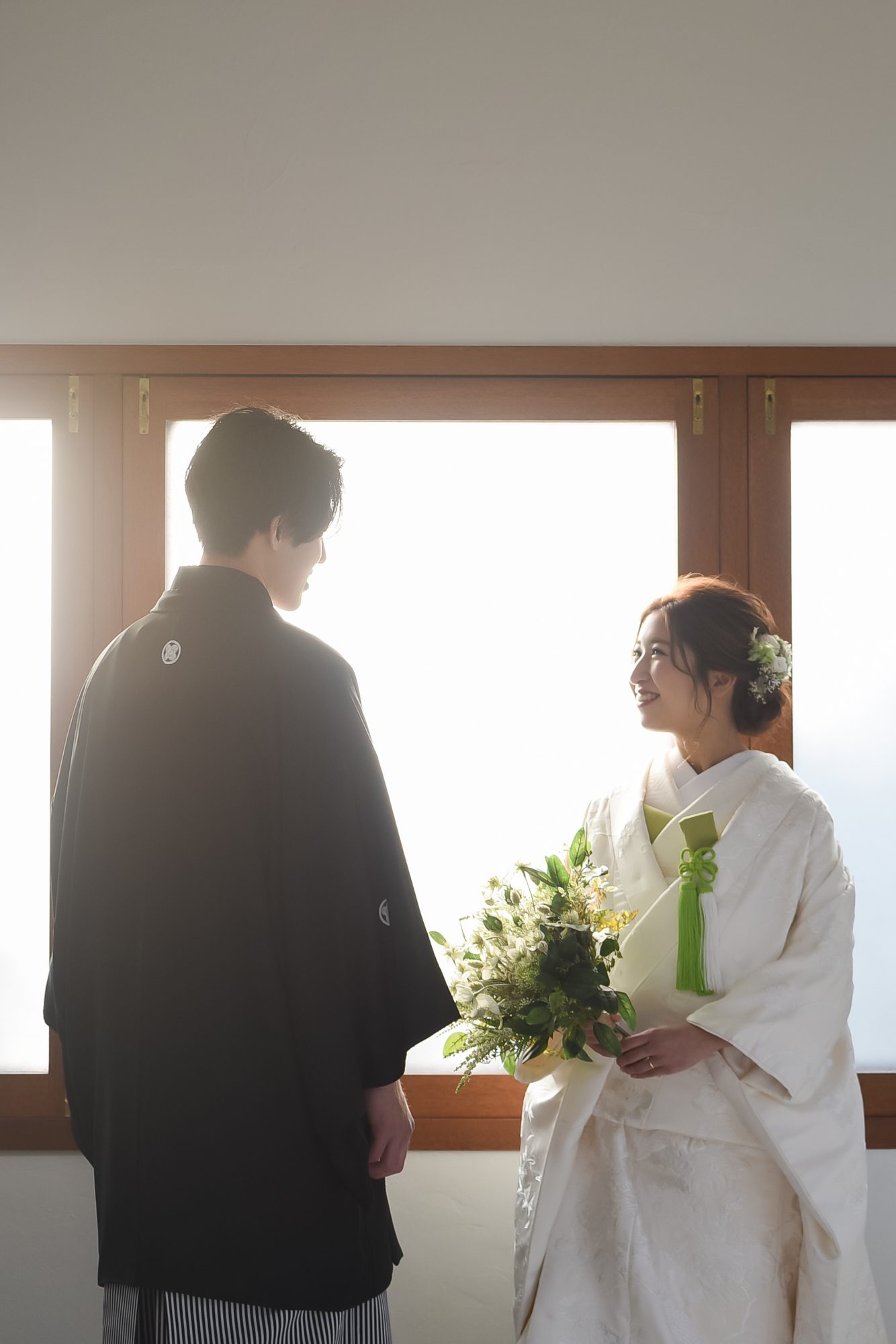 お二人のこだわりが詰まった白無垢・紋付袴のお写真をご覧ください。