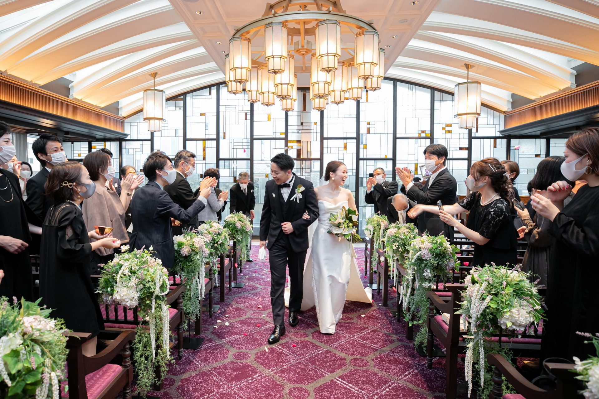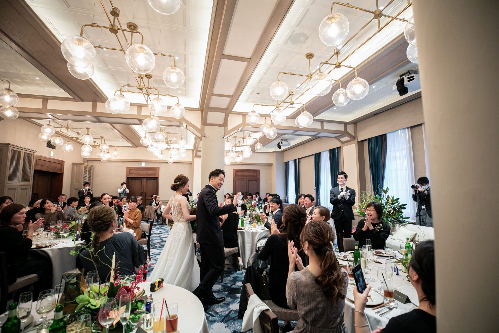 シンプルなサテンのウェディングドレスから、ビーディングが煌めく柔らかなチュールのウェディングドレスへ。まったく異なったウェディングドレスへのお召し替えによって、皆様の記憶に刻まれる、忘れられないお式になったことでしょう。