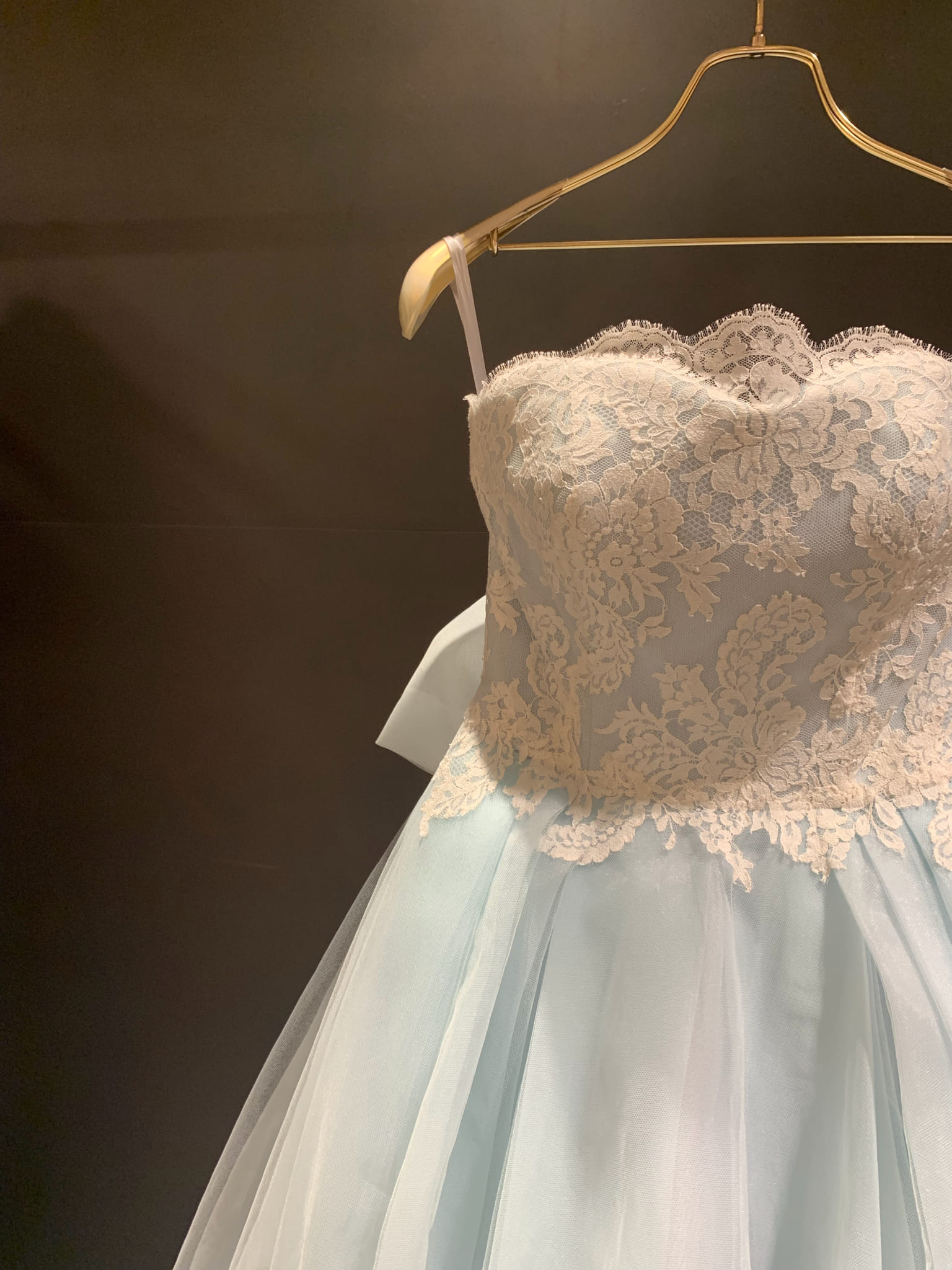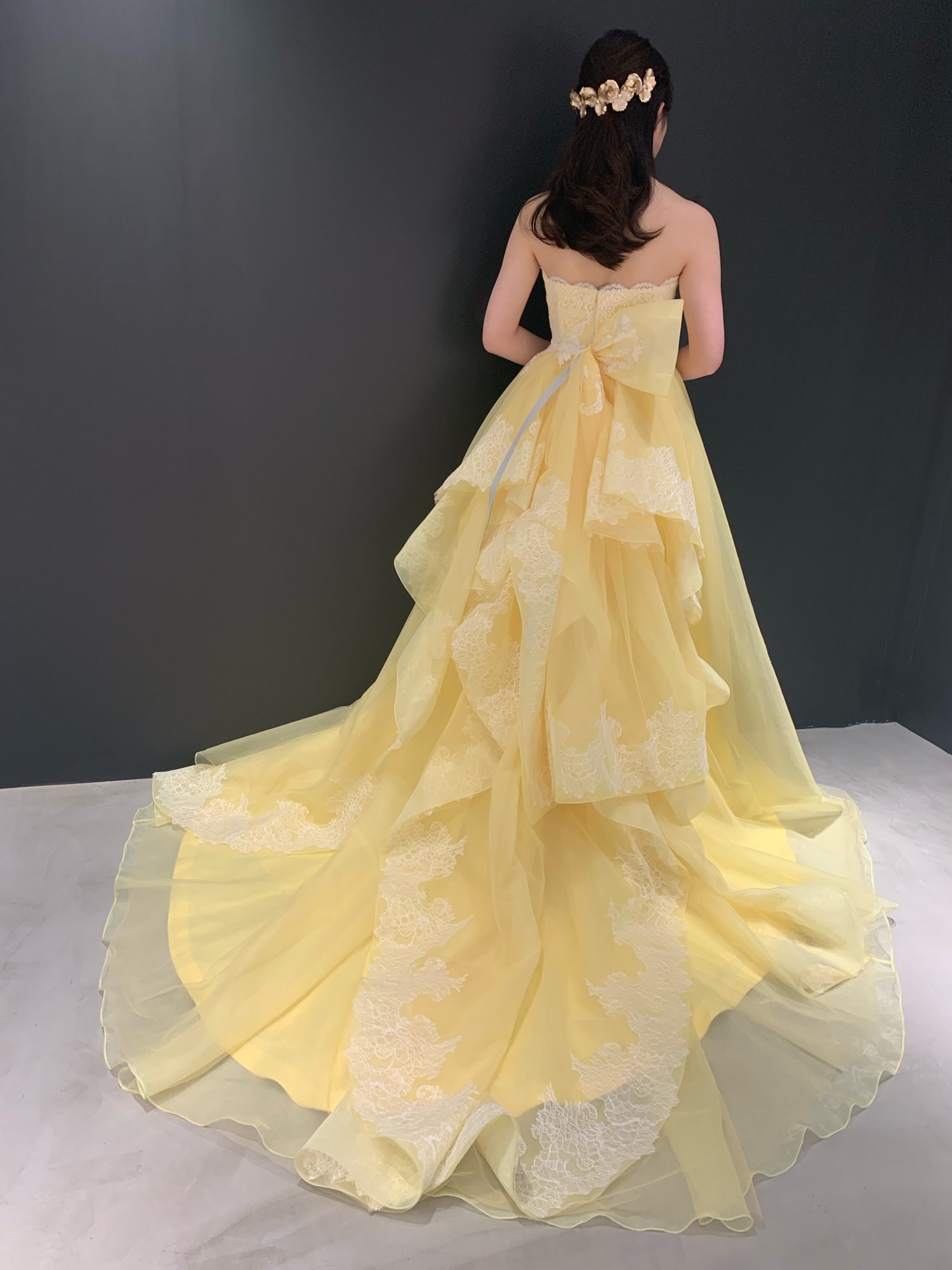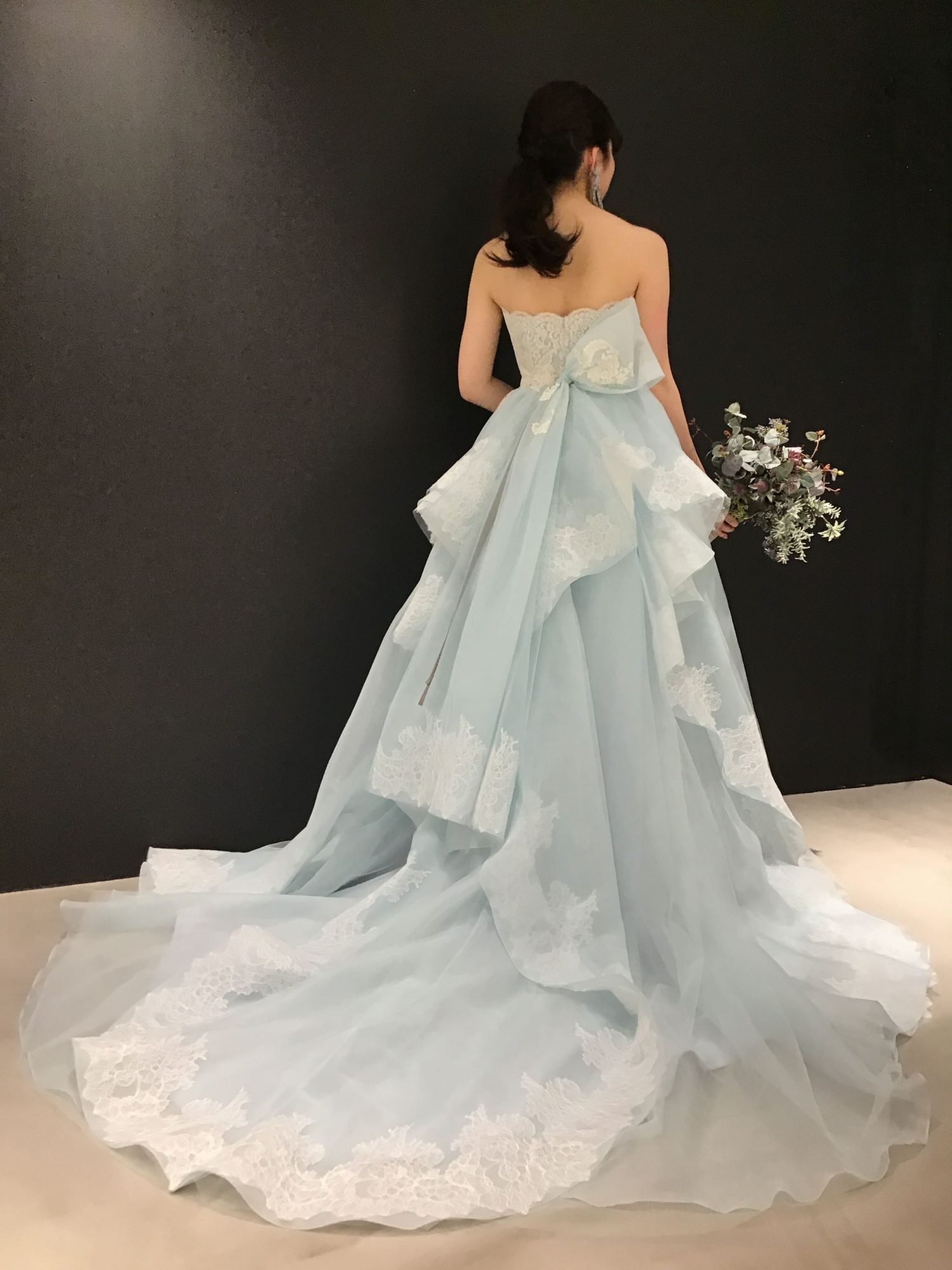 さわやかな色味と優美で女性らしい、軽やかなシルエットのカラードレス。