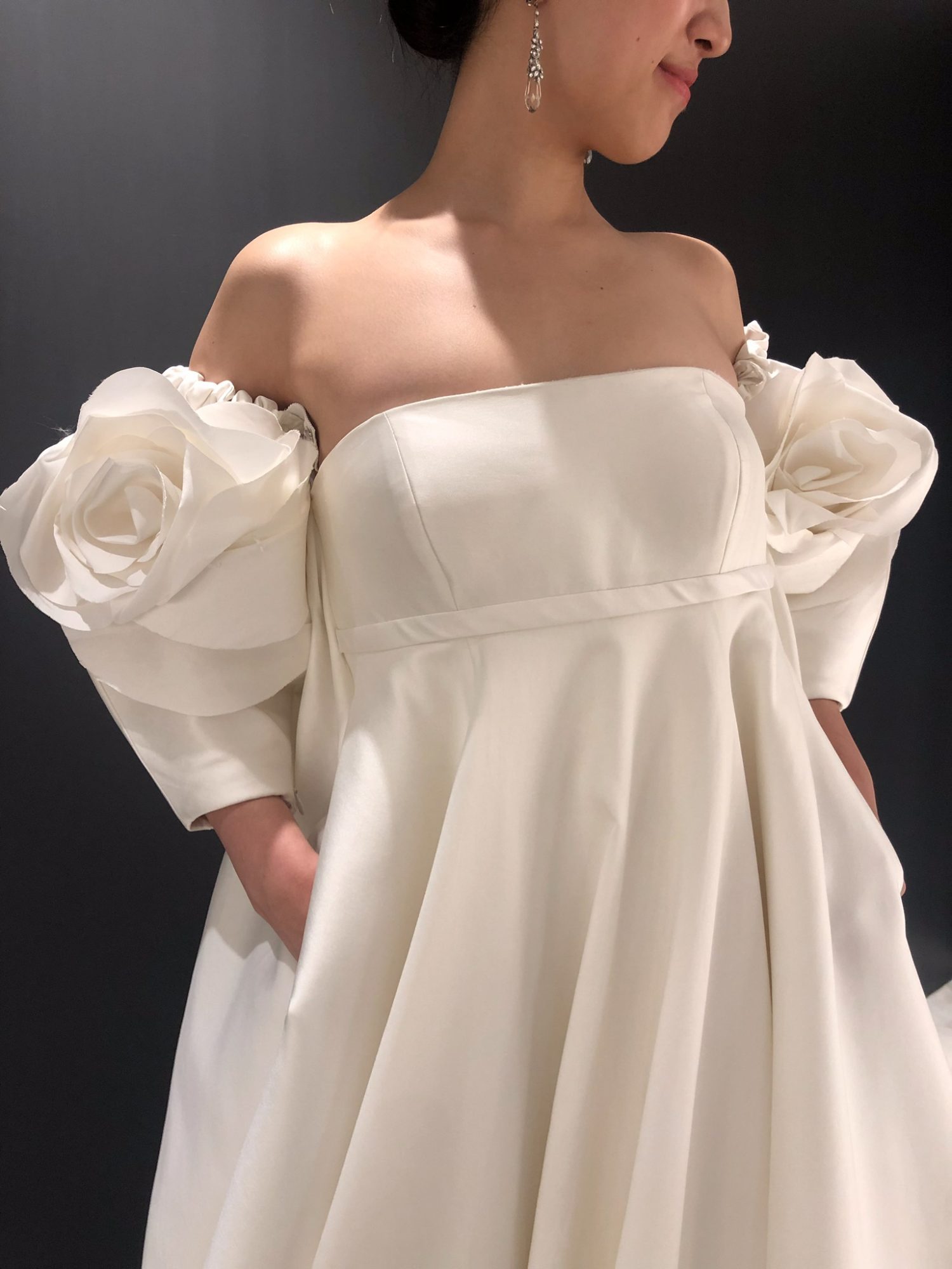 袖元には立体的なローズのお花がデザインされており、唯一無二の存在感を放ちます。