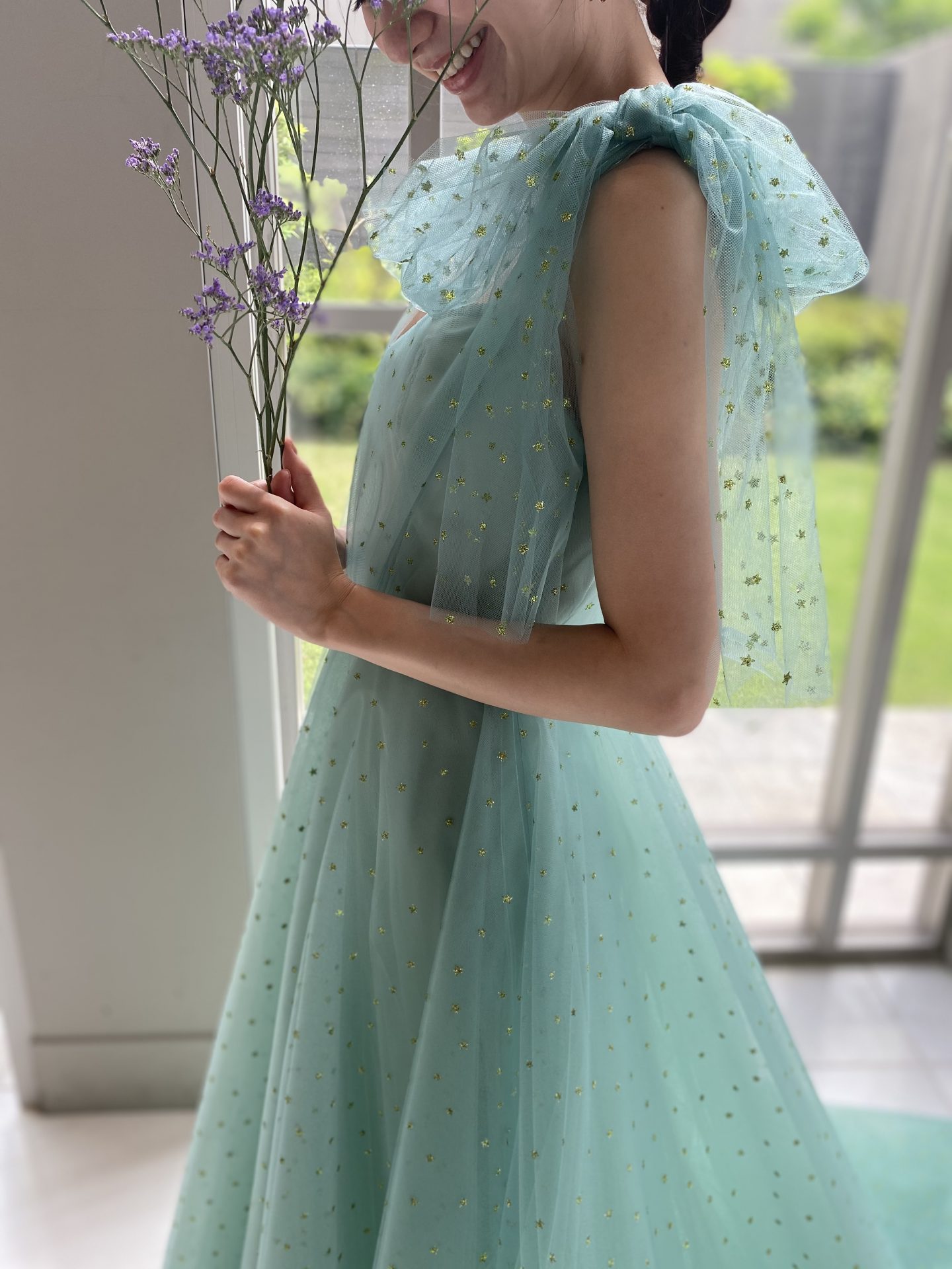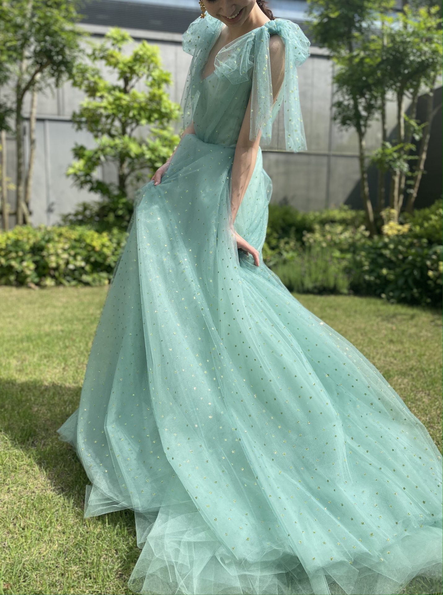 ハイアットリージェンシー大阪におすすめのザトリートドレッシングのグリーンのチュールのカラードレス