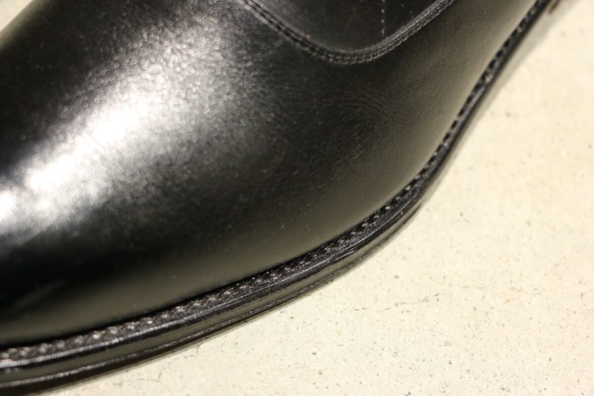 コバというのは靴底のソールと甲の皮のアッパー部分を繋ぐ際にできるソールの出っ張りのことを指します。コバは作り方によって様々でブランドやアイテムによって個性が出る部分です。コバとは、木工関連の言葉である木端(こば)に由来しており、木端とは板状に製材した木材の側面のことを示します。木端は木材の裁断面ですので、革の裁断面である靴底の側面を指す言葉にあてられたとされております。ザトリートドレッシング大阪店がご紹介するご新郎様におすすめのフォーマルシューズザトリートドレッシング大阪店がご紹介するご新郎様におすすめのフォーマルシューズ