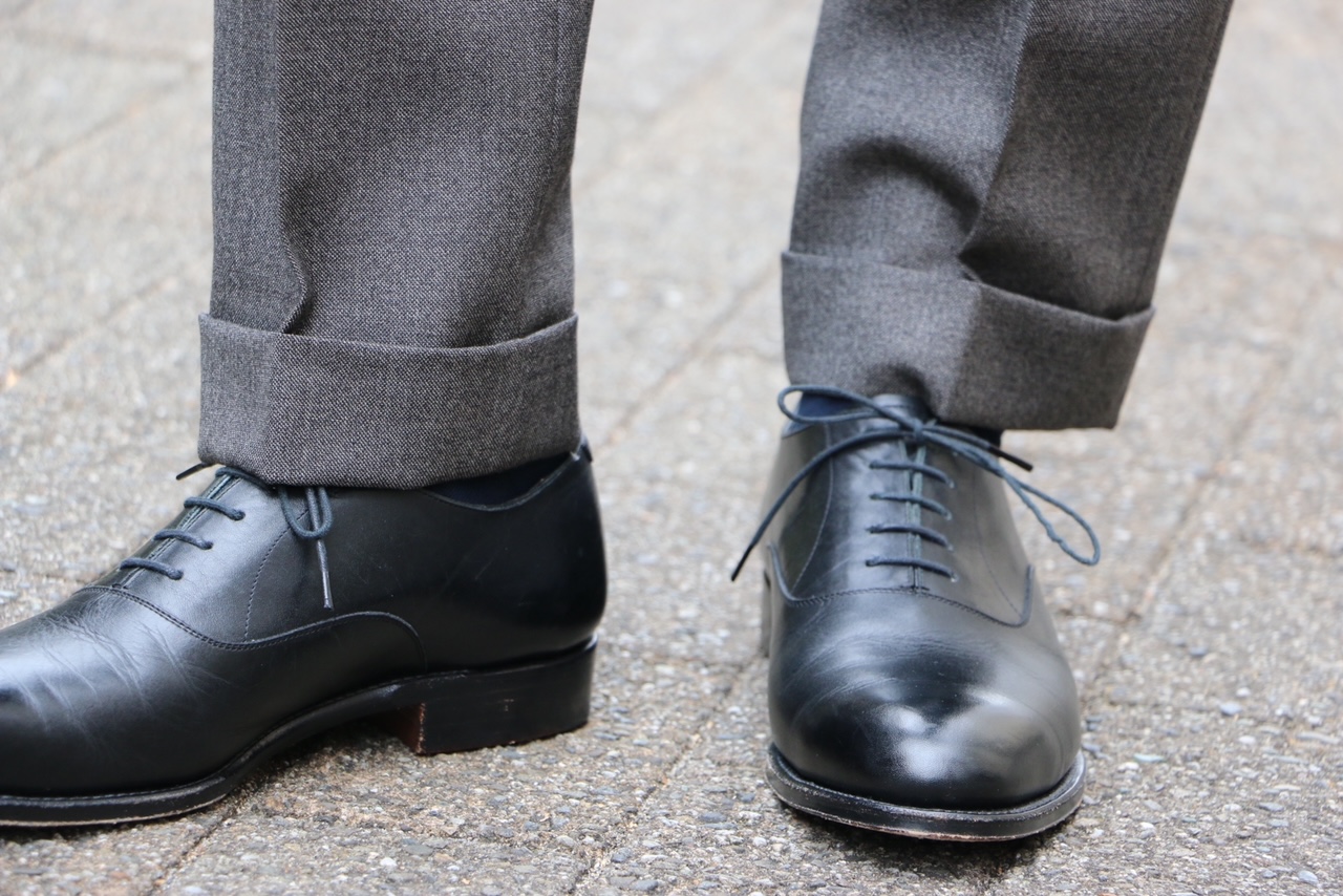 コバというのは靴底のソールと甲の皮のアッパー部分を繋ぐ際にできるソールの出っ張りのことを指します。コバは作り方によって様々でブランドやアイテムによって個性が出る部分です。コバとは、木工関連の言葉である木端(こば)に由来しており、木端とは板状に製材した木材の側面のことを示します。木端は木材の裁断面ですので、革の裁断面である靴底の側面を指す言葉にあてられたとされております。ザトリートドレッシング大阪店がご紹介するご新郎様におすすめのフォーマルシューズザトリートドレッシング大阪店がご紹介するご新郎様におすすめのフォーマルシューズ