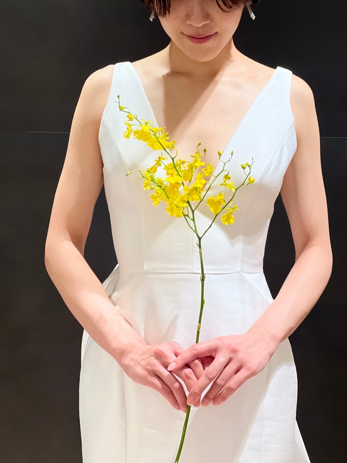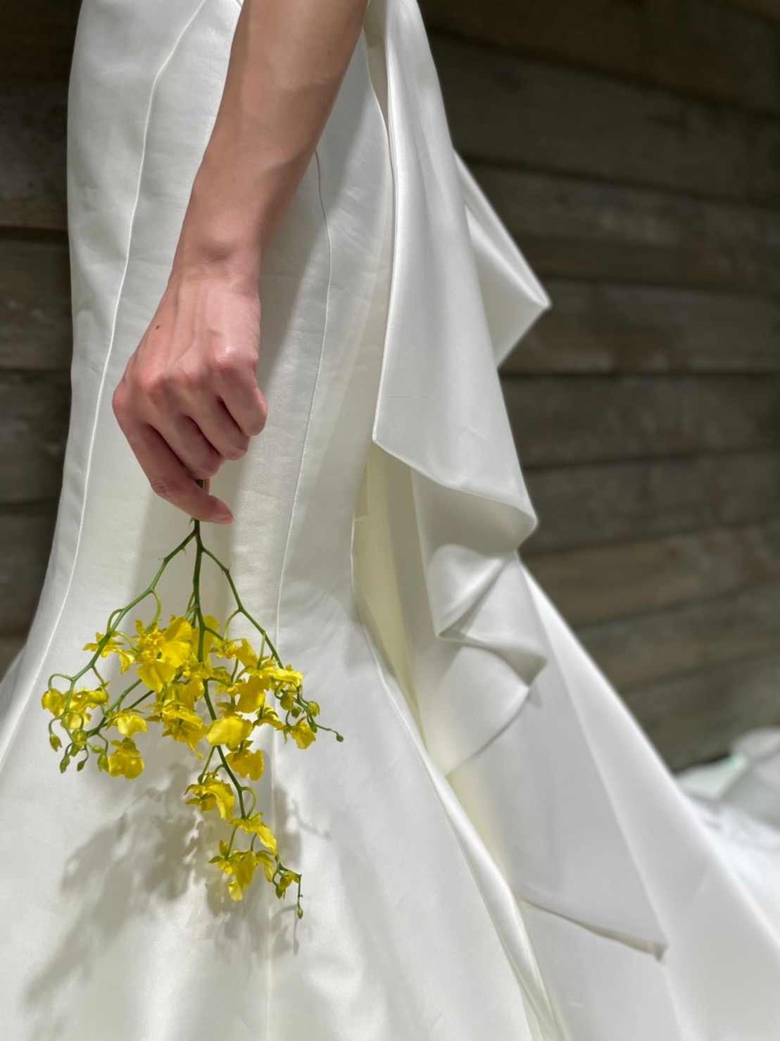 大切なゲストの皆様が暖かい笑顔でお二人のことを祝福してくださる一生に一度のご結婚式。お二人がこだわって選ばれた会場を彩る鮮やかな装花やテーブルコーディネートなど、お二人らしさが詰まった空間にも調和するドレスだからこそ、決してドレスだけが主役にはならず、皆様の記憶に残る一着になるのではないでしょうか。